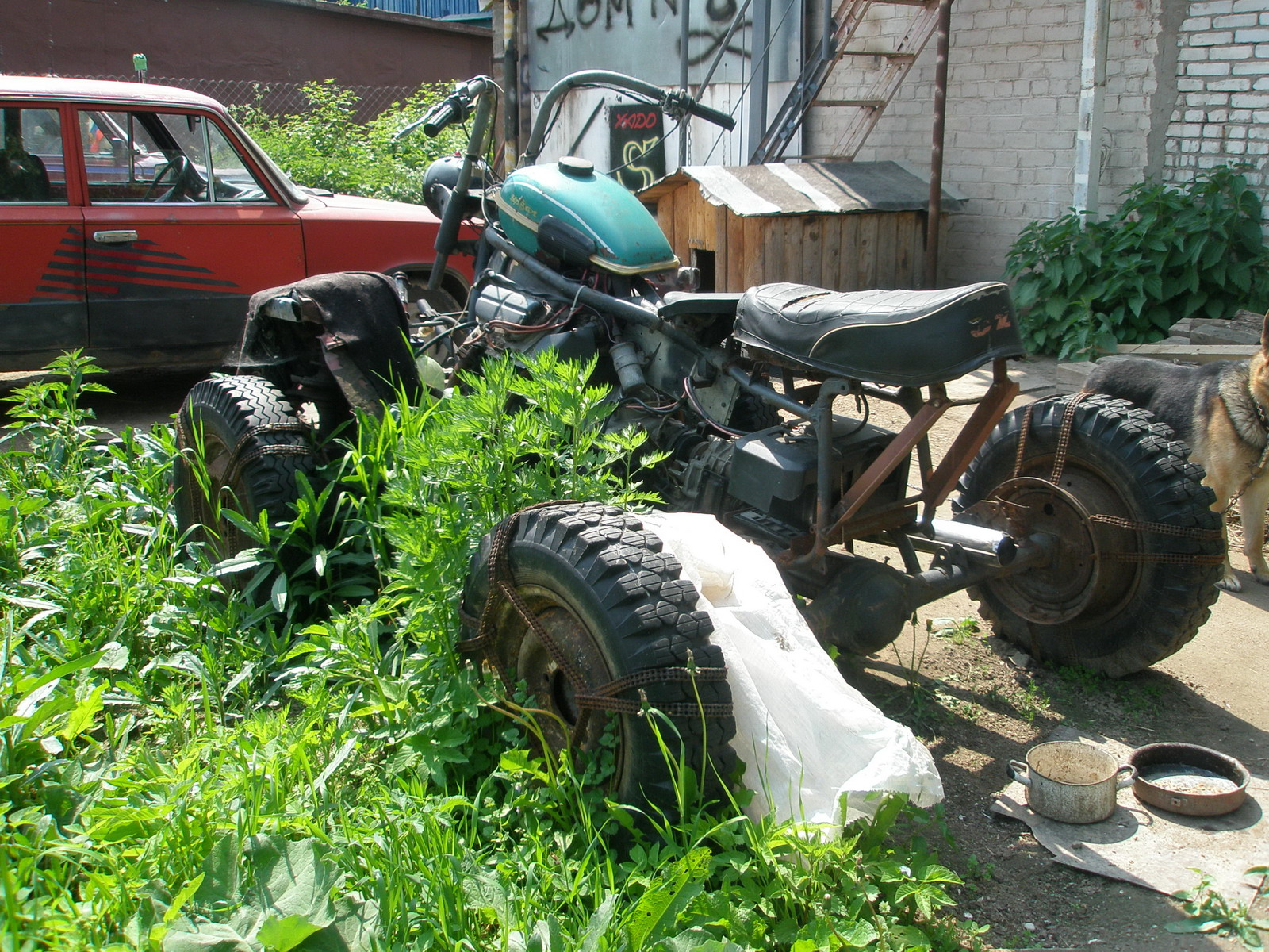 Злобная псинка-овчарка охраняла это имущество, поэтому разглядеть по-ближе этот "квадрик" не удалось...