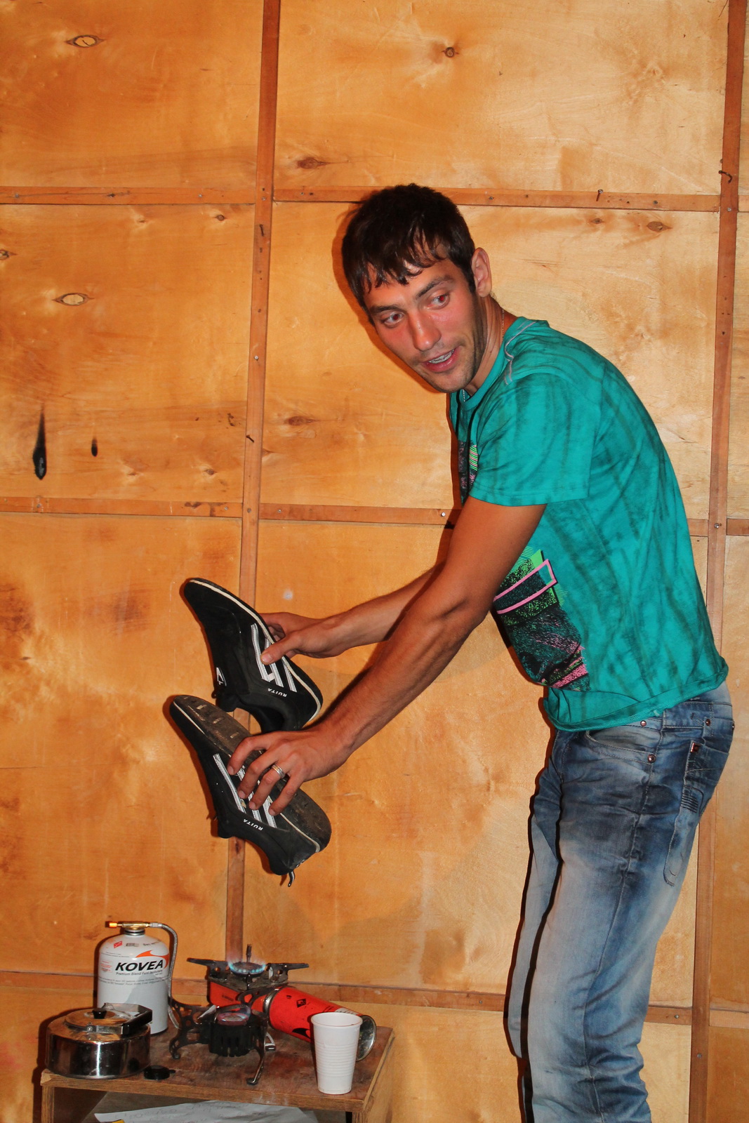 Погодка не располагала к поездкам в горы, но цель была поставлена. Дорожка местами была – идеальный асфальт, местами – приличный грейдер. На встречу попадались «пузотёрки», что наводило на мысль «мы уж точно проедем». Приподнятое настроение погода немного «обломала», когда уже высоко в горах нас застал ливень с градом. Путь стал скользким… Рулить страшновато. Участок размешанной грязи, попавшийся на пути, удивил. Как тут могли проехать легковушки, если «буханка» проехала, буксуя, а мы на Прадике прошли не с первого раза (но самостоятельно). Понятно, что Ёжику эта грязь была даже не по колено, а по щиколотку его Дефа. Преодолев грязку, упёрлись в полянку со строительными вагончиками. Лил дождь. За бортом каких-то несчастных +6. Вылезать из машины не хотелось ни разу, а разговора о палатках вообще слышать. Наши «разведчики» доложили обстановку: «Это тупик. Дальше база, где нам могут предоставить ночлег в охотничьем домике на 10 кроватей». Условия, конечно, не гостиница одна звезда, но и не в мокрой палатке (что не могло не радовать). Коллектив подобрался - юморист на юмористе, потому даже прочтение детской сказки «Зимовье» доводило до слез от смеха. Книжка, кстати, осталась от предыдущих постояльцев. Они, наверно, тоже её на ночь читали.