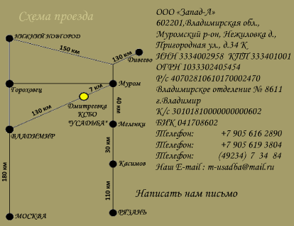 Проезд: по Владимирской трассе не доезжая Мурома 15км. д. Дмитриевка, направо :)