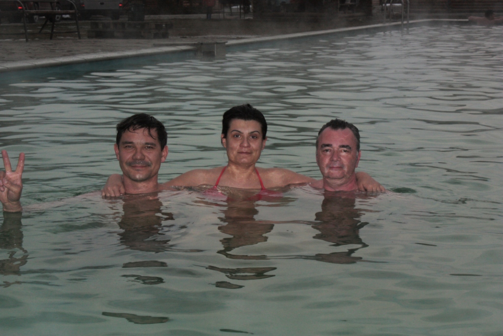 Вода в бассейне +42 градуса. Я попробовал проплыть кролем, меня Ольга от этого остерегла и правильно: пульс подскочил, рожа покраснела, пришлось вылезать остывать.