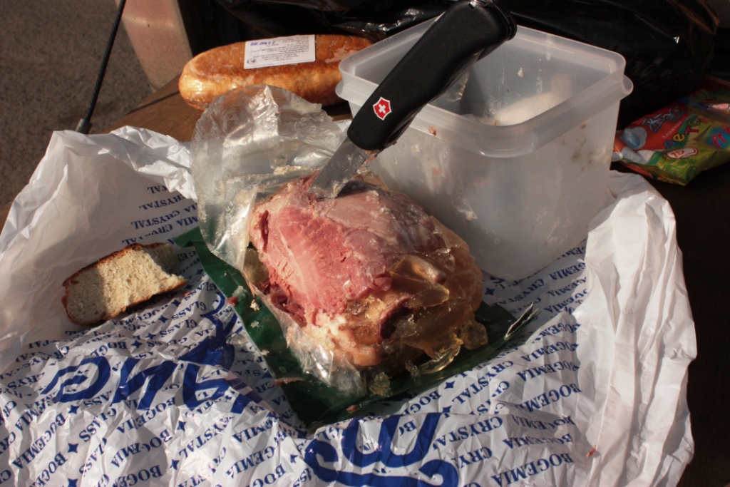 Капитан экспедиции назначил подъем на 4.30 утра. Я его в этот момент почти возненавидел, потом вспомнил что было на автокроссе после того, как он поколдует и молча подчинился. Поэтому спать... Ольга с подозрением вернула мне привезенный нами из Москвы путевой перекус в виде рульки в вакуумной упаковке. Оль, смотри какая оказалась прелесть. АФКУСССНО! Даже сейчас слюнки потекли...