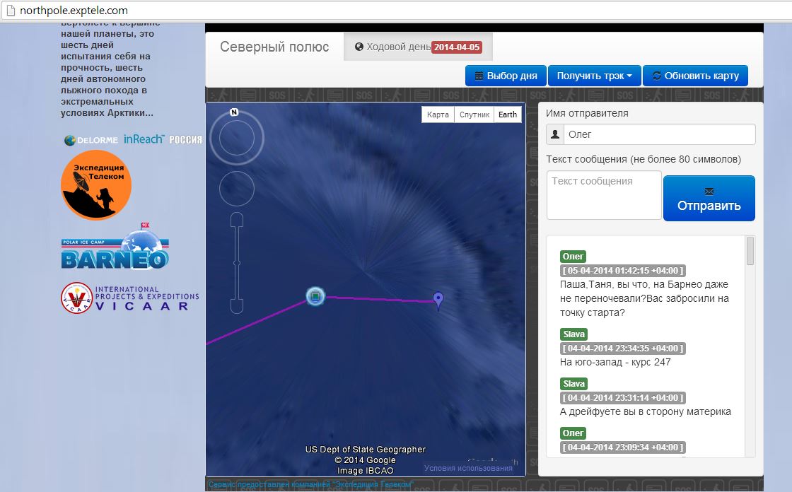 По данным РГО http://www.rgo.ru/ru/article/ledovyy-la ... neo-otkryt первый технический полет из Лонгйира на Барнео длился 2,5 часа, и мы со Славой сидели и ждали, когда Пашин трекер выйдет на связь... Есть! Через три часа и 1240 км от Лонгйира пришла точка! Наши на Барнео! Ура!