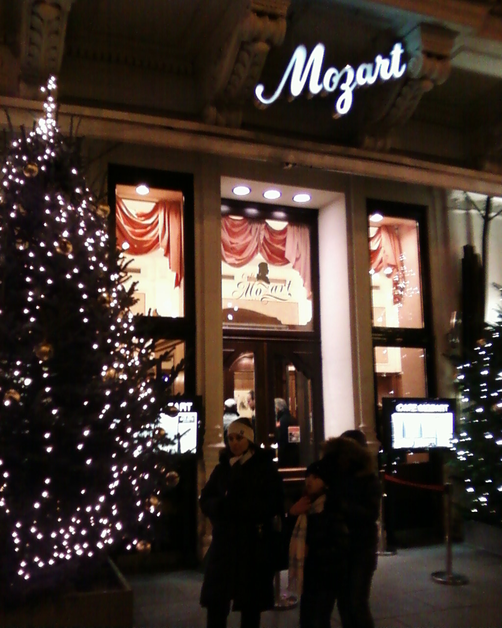 Кругом все про Моцарта, даже елочные игрушки с его портретом.