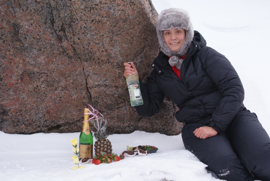 Это был самый романтичный и запоминающийся День Святого Валентина!!! Шампанское замерзало в бокале, ветер сбивал с ног... но в сердце стало так тепло! :)