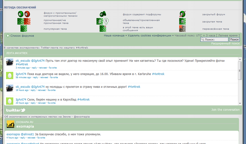 Игорь сообщает новости через твиттер, это очень быстро и просто, они автоматически и сразу появляются в ленте внизу форума: