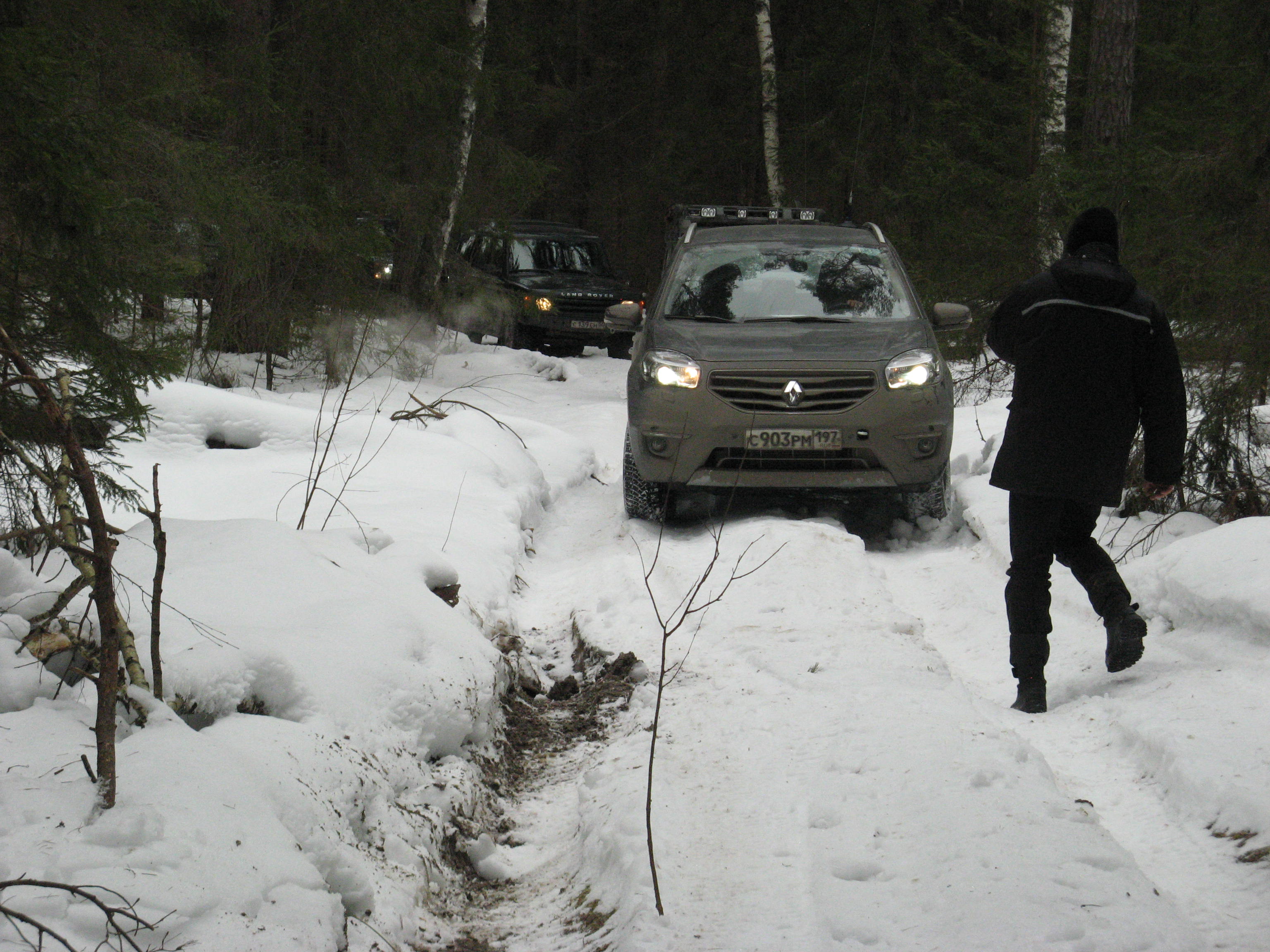 как потом выяснилось мы проскочили поворот с трассы и уехали по свежим следам в лес на пару километров, из-за чего и припоздали. Вообще-то там был бродик и могли засесть. Хорошо, что у Тьерри взял рацию, а то могли вообще пролететь с мт#27.