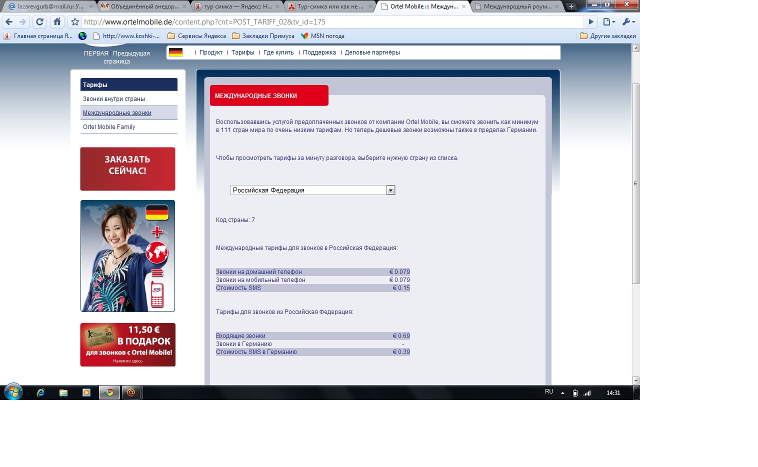 Тарифы на роуминг, международную связь