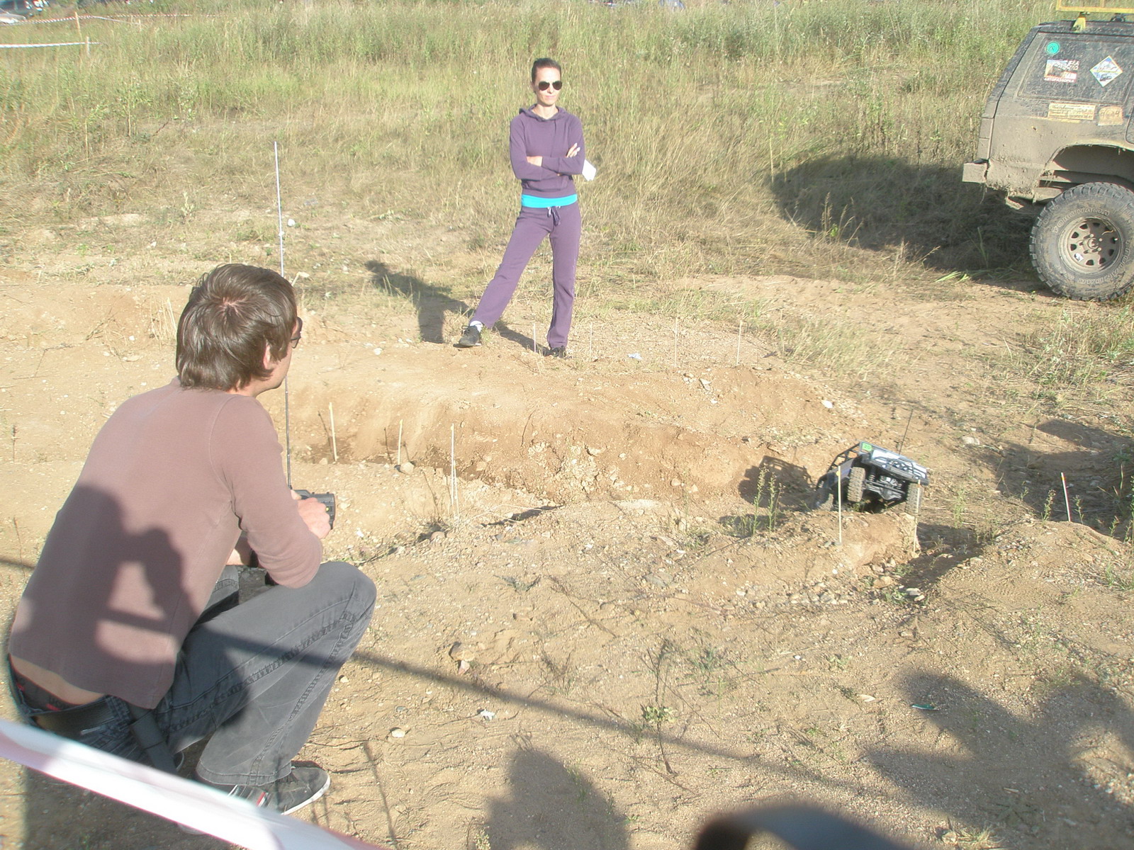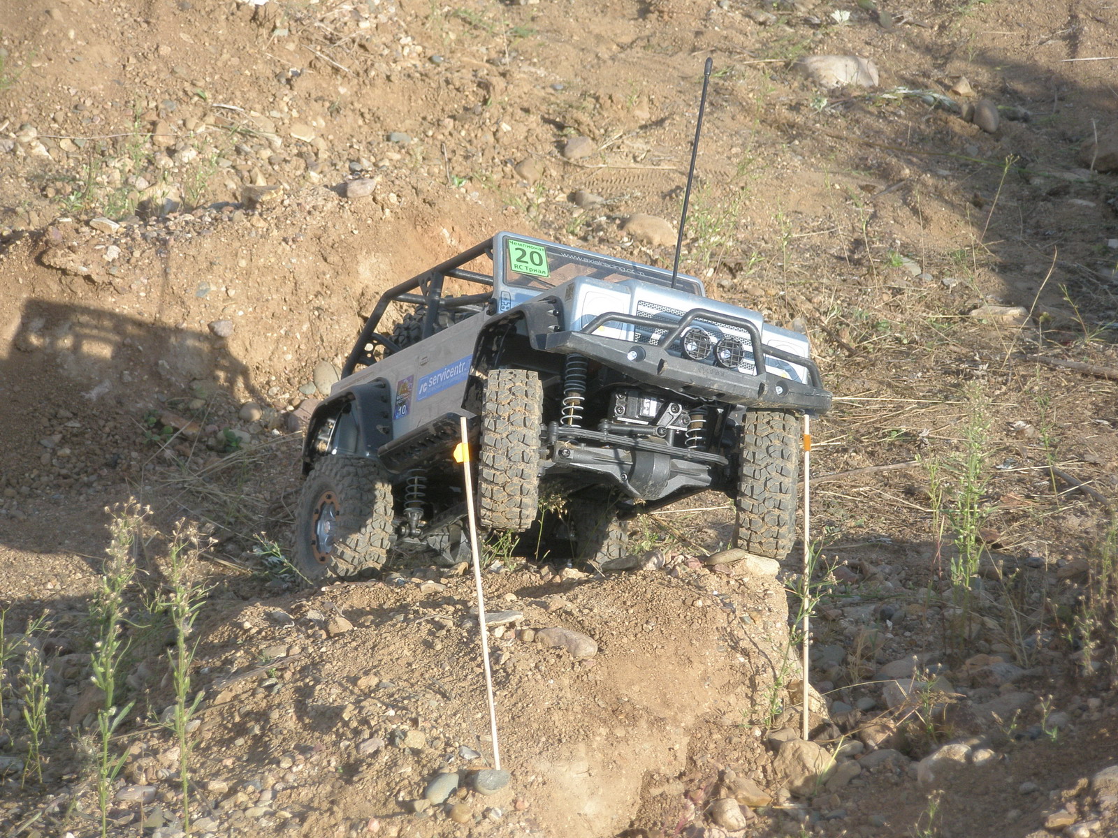 Параллельно с овощной экспедицией на мини-трассе проходили соревнования радиоуправляемых моделей внедорожников и авторских экземпляров. Удивительная трасса, созданная на основе промоин в доль дороги замечательно подходила для того, чтобы любители могли почувствовать себя джипером. :lol: Всё по-взрослому! И спуски, и подъёмы, прохождение ворот (желательно без касания), а некоторым даже приходилось лебедиться!