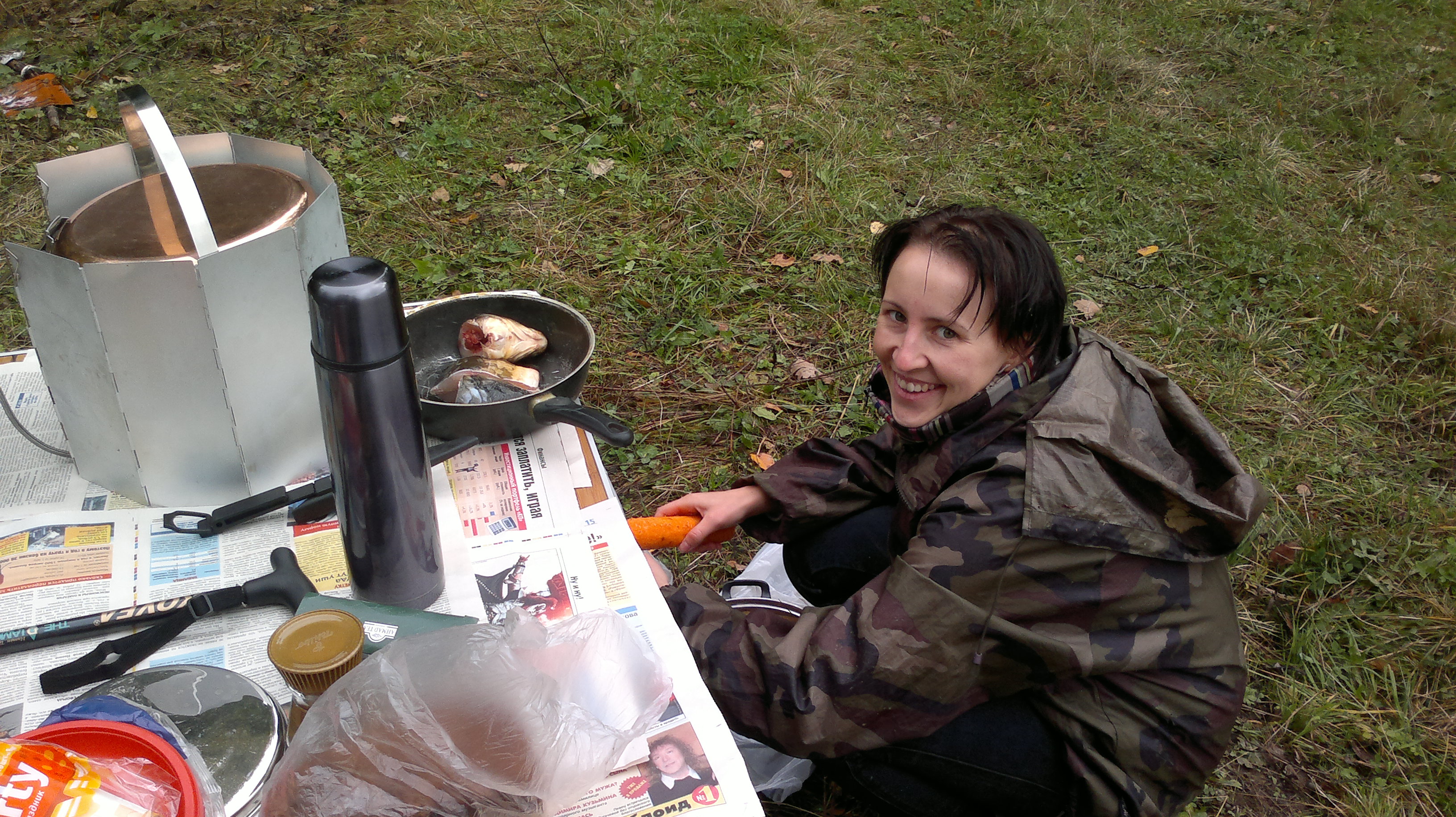 Пока ребята пытались найти общий язык с природой мы с Версом время зря не теряли, сходили грибов насобирали,супчик сварили короче обед был готов вовремя! Думаю всем все понравилось :wink:
