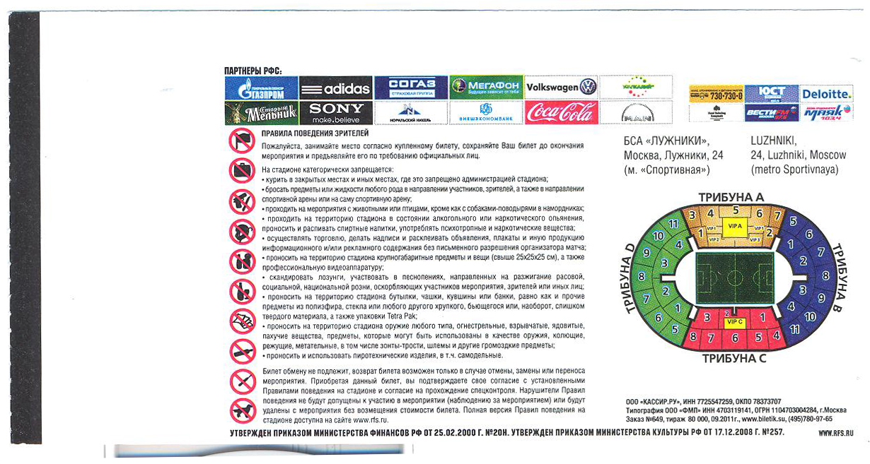 – Курение в местах стадиона, где это запрещено.