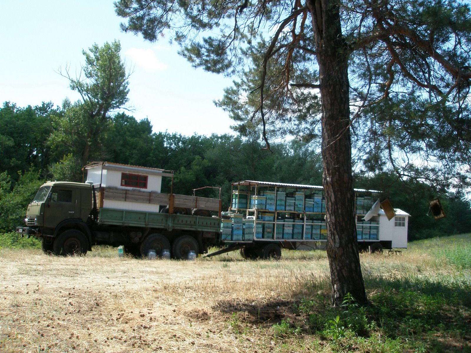 Можно сказать, что этот день был дюнно-песчанным…Песчаные спуски и подъёмы вели нас то вдоль реки, то через прозрачный светлый сосновый лес…На одной из полянок в таком лесу располагалась выездная пасека. Наша команда не удержалась от пробы ложки свежего мёда…Да, не просто попробовала, а и набрала с собой энное количество килограмм. Далее выездные пасеки стали попадаться чуть ли ни на каждой полянке…Говорят, пчёлок вывезли к липам поближе.