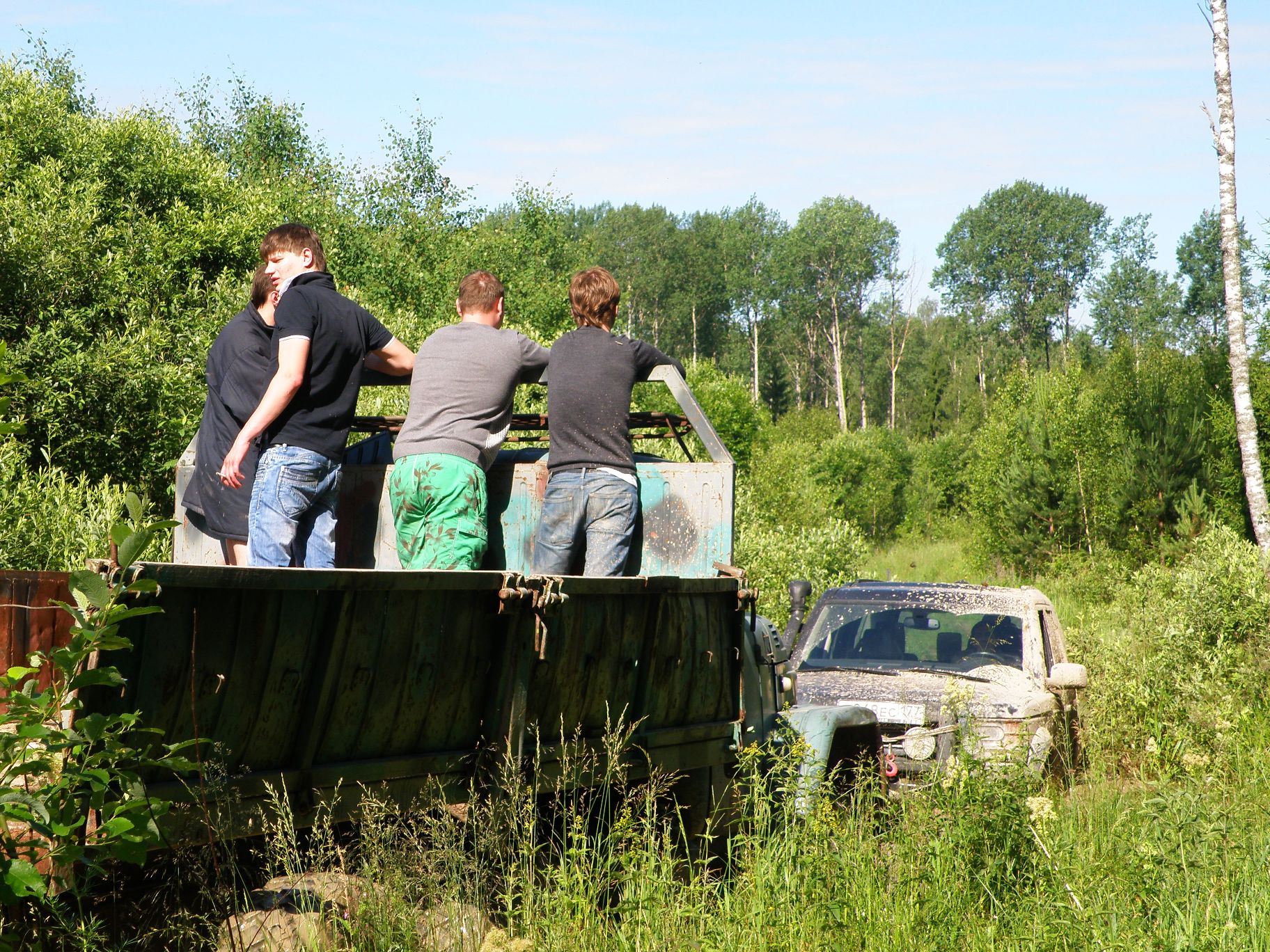 Пришлось оставить Наташу в лесу (ночью!) а самому идти "за трактором". Трактора не нашлось, но подвернулся ЗиЛ-131 с юными аборигенами!