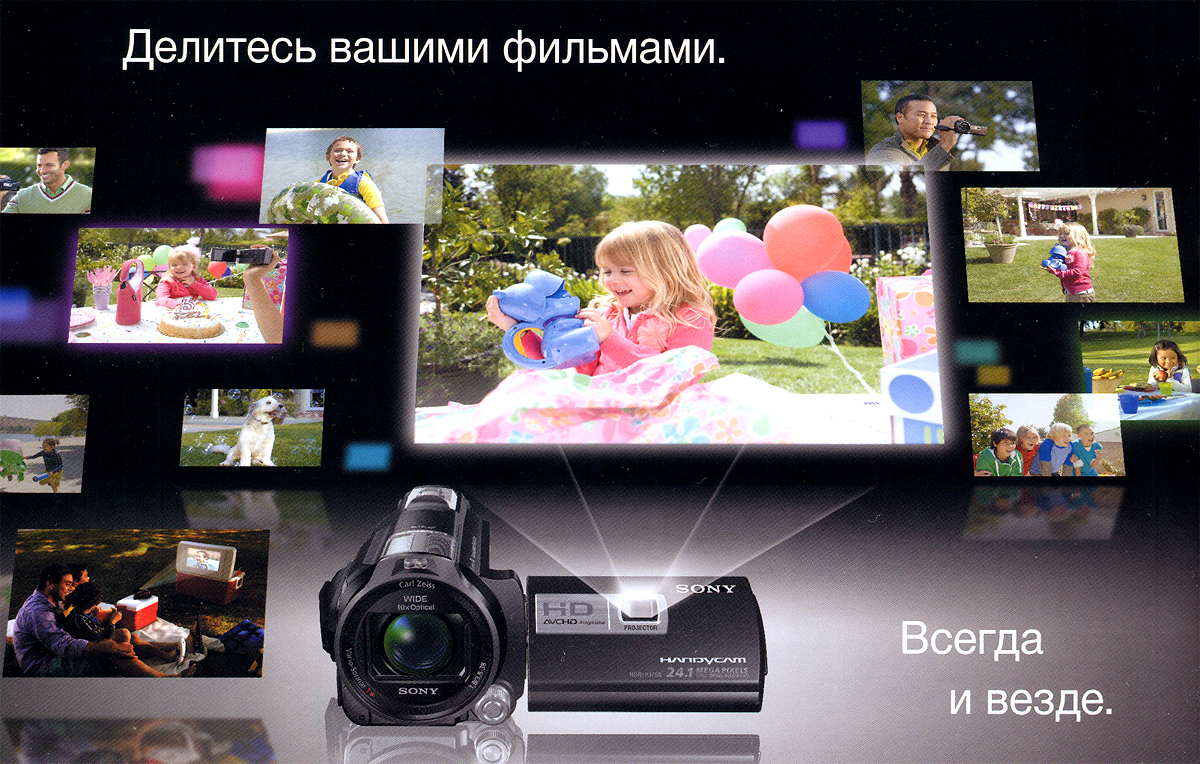 Проектор - ну, не знаю. Дело в том, что монтировать фильм на камере занятие глупое, а показывать себе и друзьям "куски" неинтересно и занудно. Единственное, что интересно - закачать смонтированное видео на карточку и показывать его где-нибудь на стене, где нет хорошего телевизора. Правда, не факт, что такой фокус пройдёт - Сонька категорически не любит чужих форматов, ей свой, родной подавай (прога Sony Vegas).