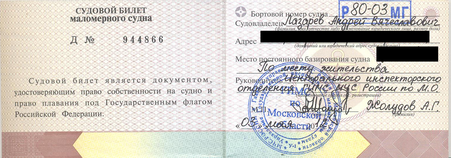 Регистрация лодочек в ГИМС