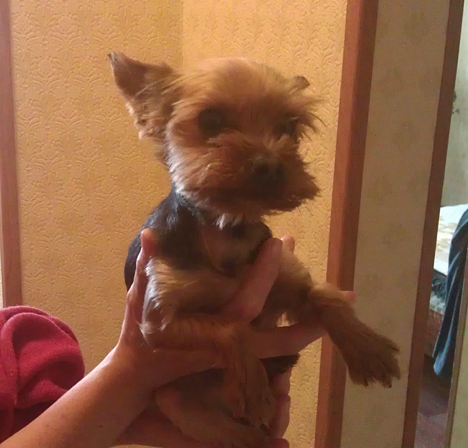 Шла от метро. Бросился в ноги. Минут 15 ходила около метро и по всяким местным магазинам....никто не искал. Пришлось взять. Щенок йоркширского терьера. Вроде девочка, но не уверена. Подарю. Желателен самовывоз))).
