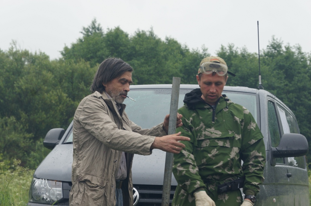Вечером долго спорили какой ставить на месте захоронения памятный знак: Георгий закупил оцинкованных труб, но как теперь с ними быть: заехать к месту явно не получается, только пешком, а трубы весят – будь здоров! Ночью пошел дождь, продолжавшийся и утром. Утром, чтобы не терять времени, решили все же пилить и варить трубы пока не распогодится (необходимые инструменты и генератор взяли с собой из Москвы). К полудню дождь прекратился.