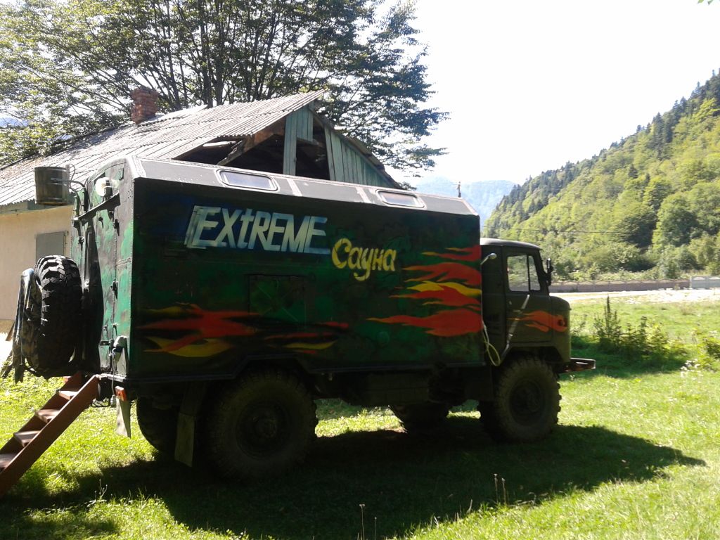 Транспортное средство Петра заслуживает отдельного упоминания. Этот пепелац - утилитарный гибрид советского и японского автопрома. Шасси машины было от шишиги (ГАЗ-66), кабина и двигатель от MITSUBISHI CANTERa. В качестве кузова использовался выпотрошенная DELICA, а «резина» была позаимствована у БТР. Две раздатки, две лебедки, в кузове автономная печка и биотуалет. О необходимости последнего можно поспорить , но в целом аппарат получился очень достойный! В шлаковой пустыне внедорожник смотрелся, пожалуй, не менее эффектно, пыливших полвека назад здесь луноходов.
