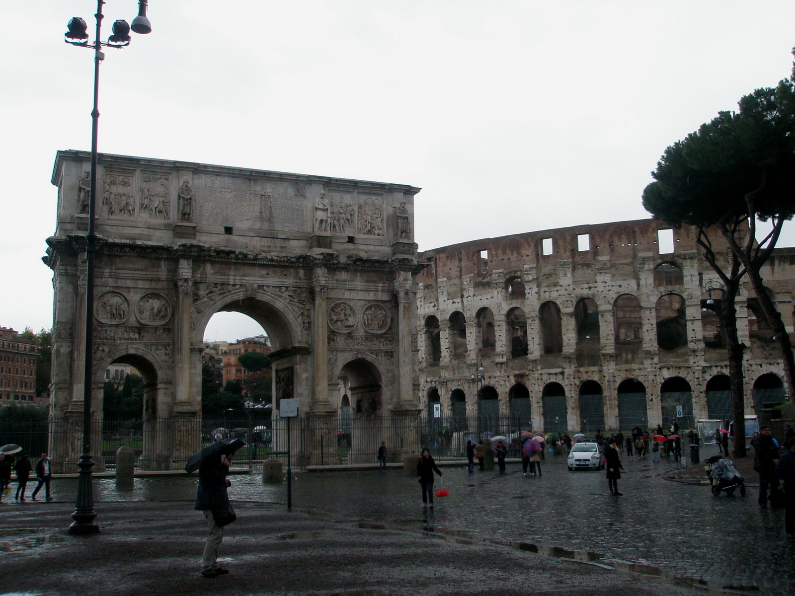 Про архитектуру - отдельная тема. Я за границей, можно сказать, второй раз была, потому не знаю, как оно вообще где... в других метсах. Моё впечатление - Древние римляне страдали гигантизмом. Строили с размахом, считая, что на планете места много и пол земного шара вполне хватит на постройку нескольких Колизеев, Соборов и т.д. Наверное, рассчитывали, что площади Земли должно им хватить. Находясь в стенах Колизея, ощутила себя мааааленьким существом на подобие муравья в муравейнике. Такие постройки всегда вызывают один и тот же вопрос: "Как же они смогли это всё сделать??? И сколько людей погибло при этом?" С трудом представлялось, как происходили мероприятия на арене...Может, потому что и арены не осталось...Проливной дождь не располагал к прогулкам по достопримечательностям, Колизей показался вдвойне унылой постройкой.