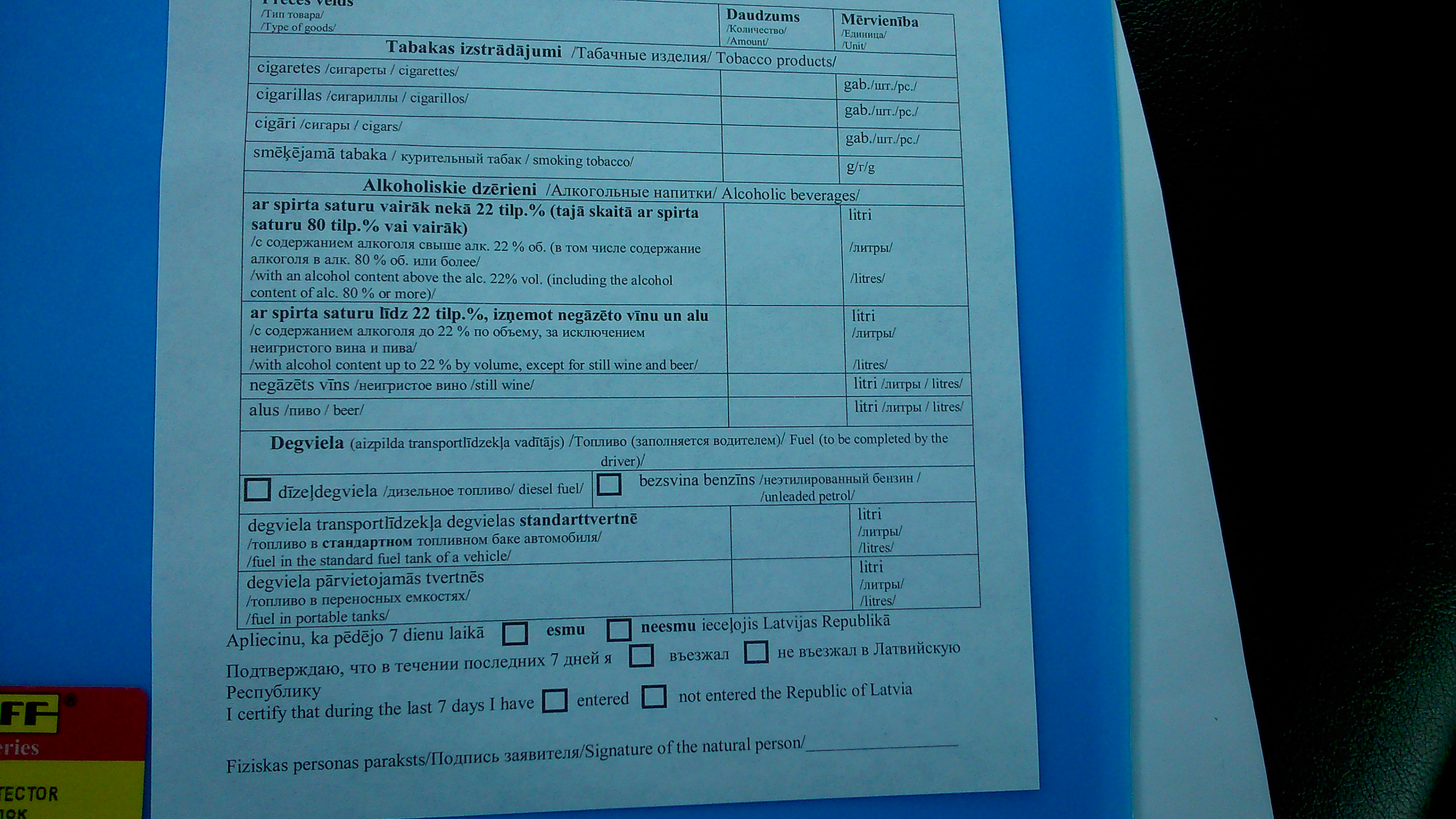 У латышей будете заполнять бланк (маразм!) о